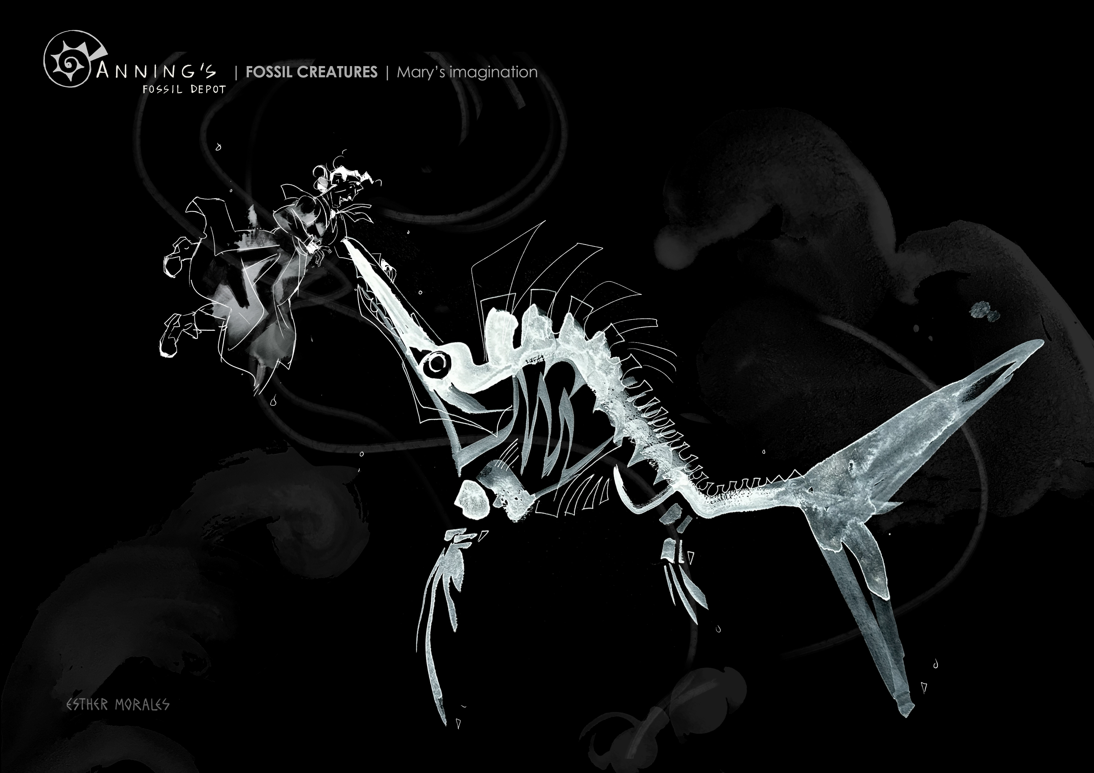 Mary Anning (1799-1847) was an English paleontologist and fossil collector whose findings contributed tremendously in our understanding of Prehistoric life. She spent her whole life, since her early childhood, meticulously exploring and climbing over the cliffs of Blue Lias at Lyme Regis, always in the hunt for new fossils and Jurassic treasures. She made huge discoveries such as the first ichthyosaur fossil when she was only twelve years old, the first plesiosaur and pterosaur skeletons, and multiples coprolites, belemnites and ammonites.